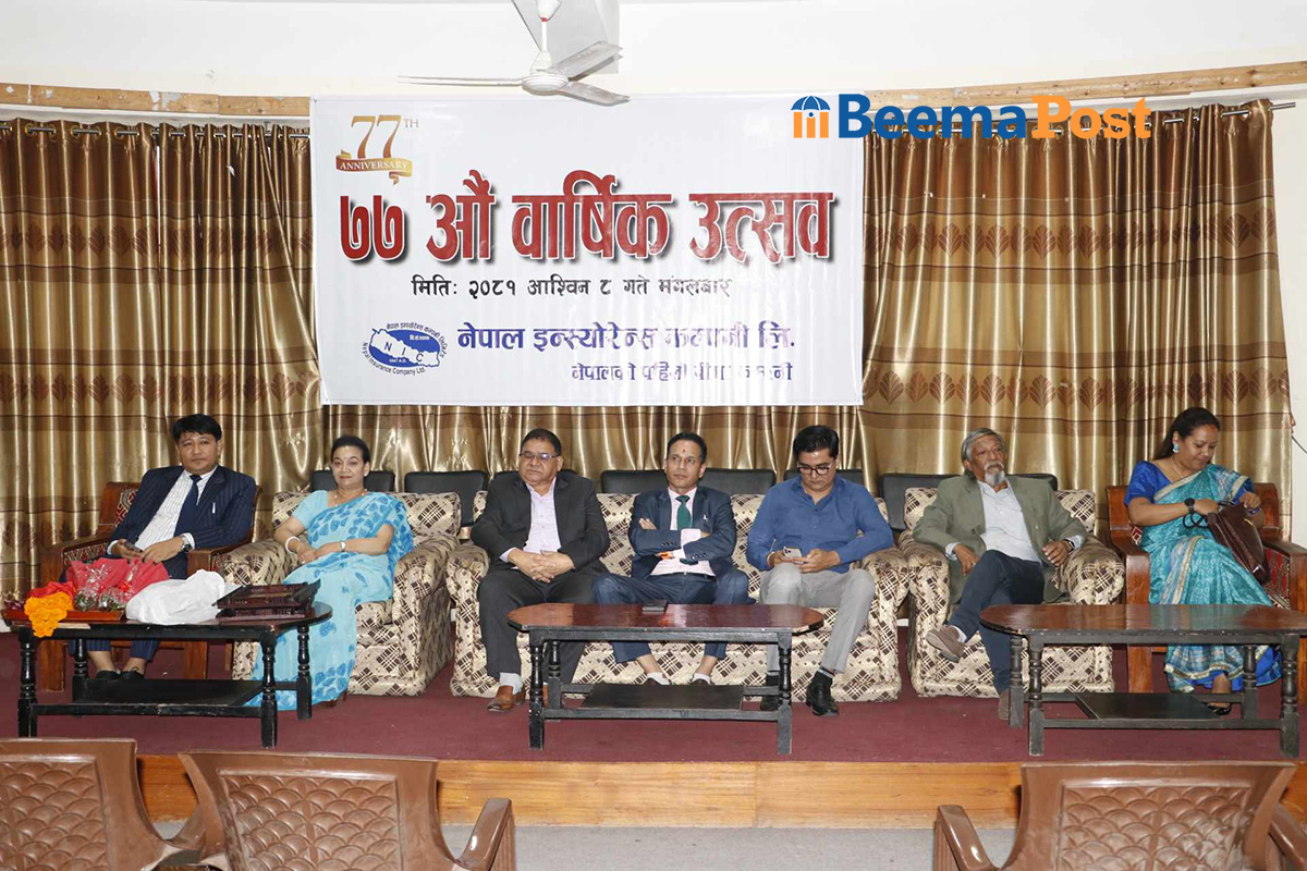 काठमाडौँ। नेपाल इन्स्योरेन्स कम्पनी लिमिटेडले आफ्नो ७७औं वर्षगाँठ सम्पन्न गर्दै ७८औं वर्षमा प्रवेश गरेको छ। नेपालको पहिलो बीमा कम्पनीको रूपमा स्थापित संस्था विसं २००४ (सन् १९४७) मा नेपाल मालचलानी तथा बीमा कम्पनी लिमिटेडको नाममा सुरु भएको थियो। यो बीमा कम्पनीले बीमा सेवाको क्षेत्रमा लामो इतिहास कायम राख्दै आफ्नो छुट्टै पहिचान निर्माण गरेको छ।