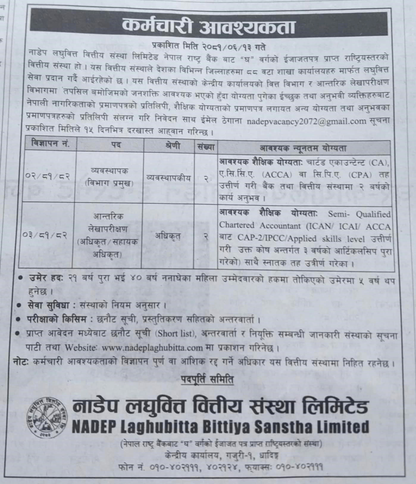 नाडेप लघुवित्तद्वारा कर्मचारी माग, यसरी दिनुहोस् आवेदन