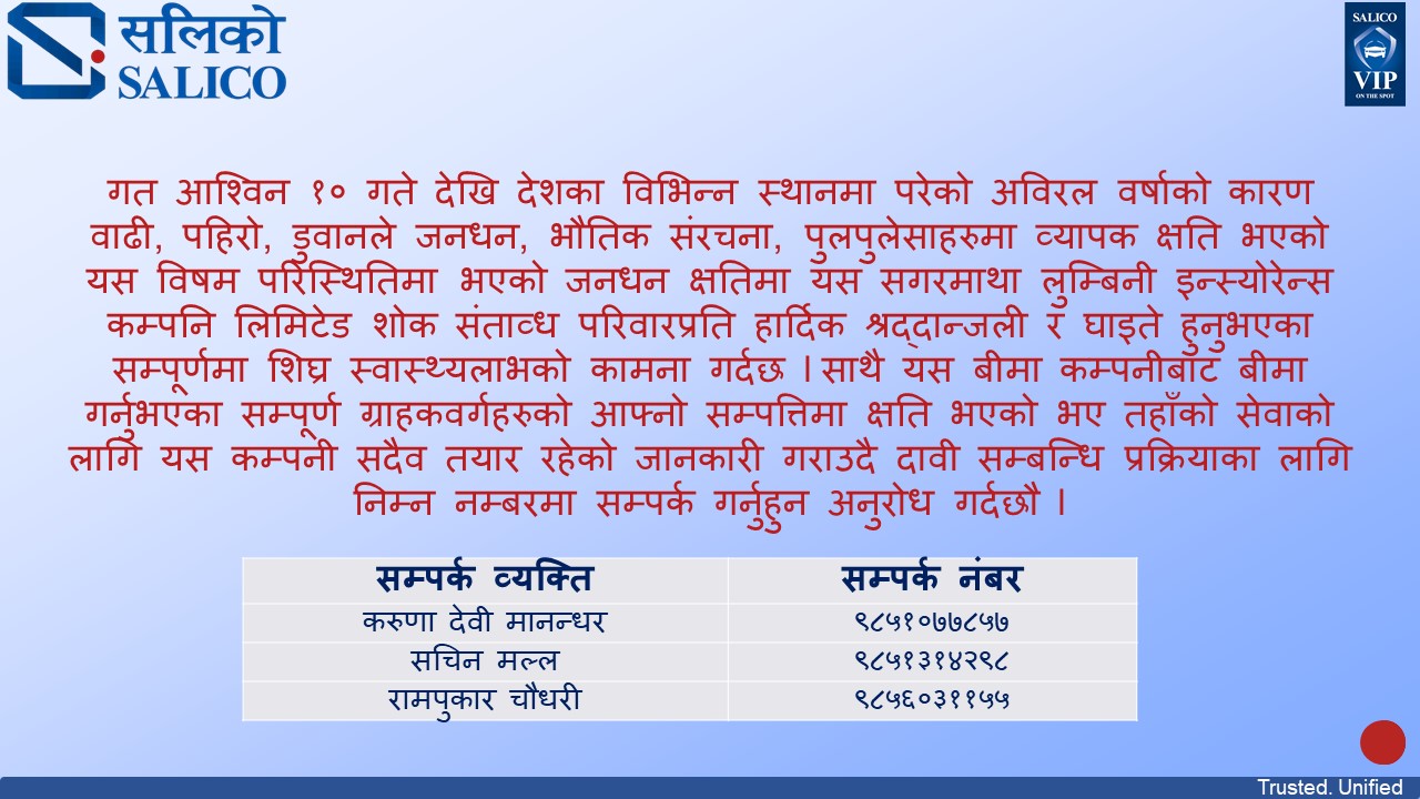 बाढी पिडितहरुले हटलाइन मार्फत बीमा कम्पनीमा दाबी गर्न पाउने (कम्पनीको हेटलाइन नम्बरसहित)