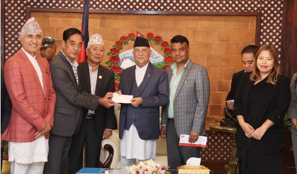 ग्रुपका अध्यक्ष भट्टचनले प्रधानमन्त्री केपी शर्मा ओलीलाई एक करोड रुपैयाँको चेक हस्तान्तरण गरेका छन् । त्यस्तै अर्को चेकमार्फत ७५ लाख रुपैयाँ हस्तान्तरण गरिएको छ ।
