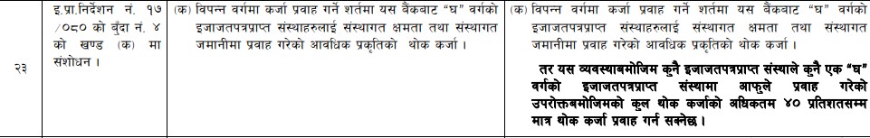 वाणिज्य बैंकमार्फत लघुवित्त कम्पनीमा थोक कर्जा प्रवाह सम्बन्धी नयाँ व्यवस्था
