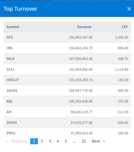 शेयर बजार बढेसँगै नेपाल फाइनान्स र हिमालयन रि इन्स्योरेन्सको सर्वाधिक कारोबार भएको । जसमा नेपाल फाइनान्सको १५ करोड नौ लाख रुपैयाँ र हिमालयन रि इन्स्योरेन्सको १५ करोड चार लाख रुपैयाँ रहेको छ ।