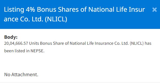 नेशनल लाइफ इन्स्योरेन्सको बोनश शेयर सूचीकृत