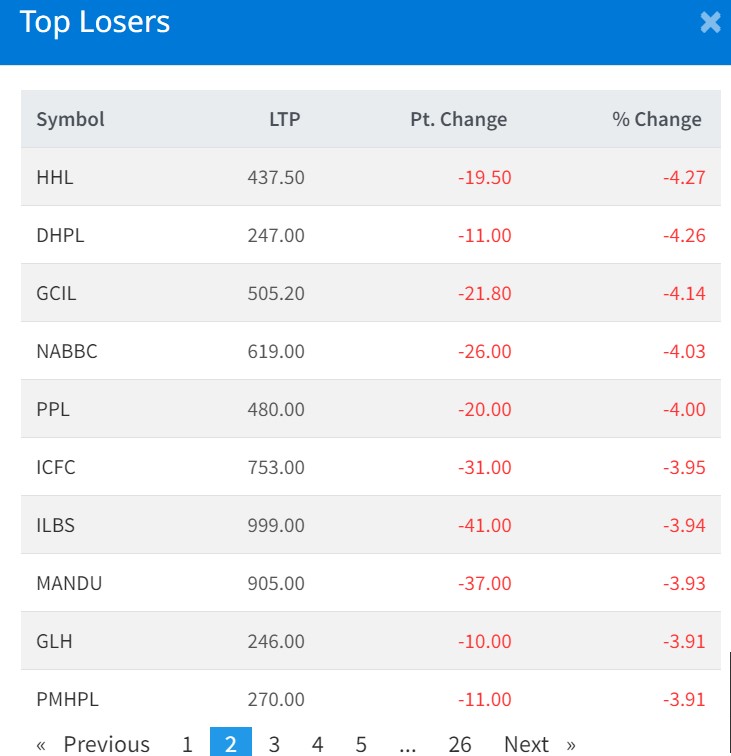 २२६ कम्पनीको शेयरमूल्य गिरावट, कुनको कति रुपैयाँले घट्यो ?
