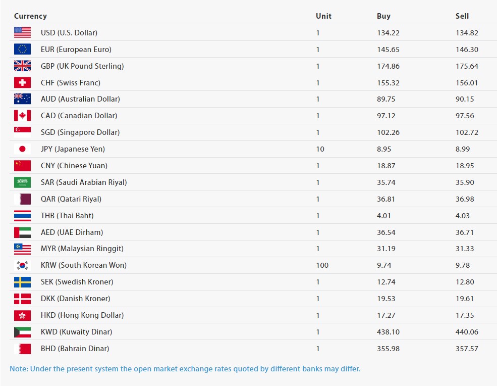 यता मलेसियन रिंगिट एकको खरीदका लागि ३१ रुपैयाँ १९ पैसा तोकिएको छ भने बिक्रीका लागि ३१ रुपैयाँ ३३ पैसा तोकिएको छ । १ यूएई दिराम खरीदका लागि ३६ रुपैयाँ ५४ पैसा र बिक्रीका लागि ३७ रुपैयाँ ७१ पैसा तोकिएको छ ।