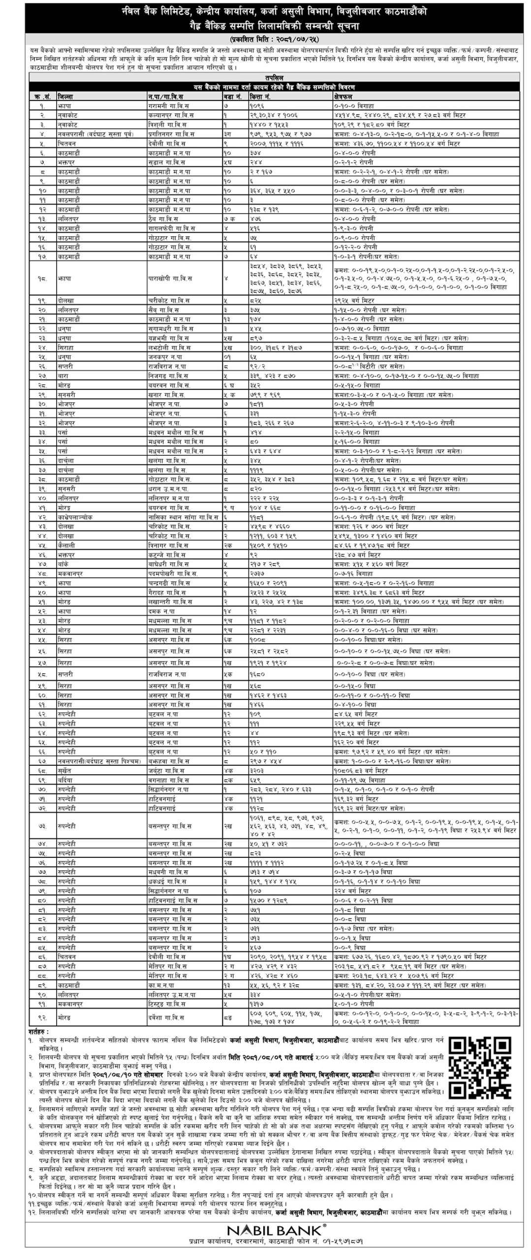 नबिल बैंकले २५ जिल्लामा ९२ स्थानको घरजग्गा लिलामी गर्दै