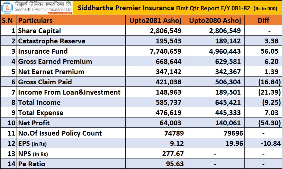 पहिलो त्रैमासमा सिद्धार्थ प्रिमियरले कमायो ६ करोड रुपैयाँ नाफा, कस्तो छ अन्य सूचक?