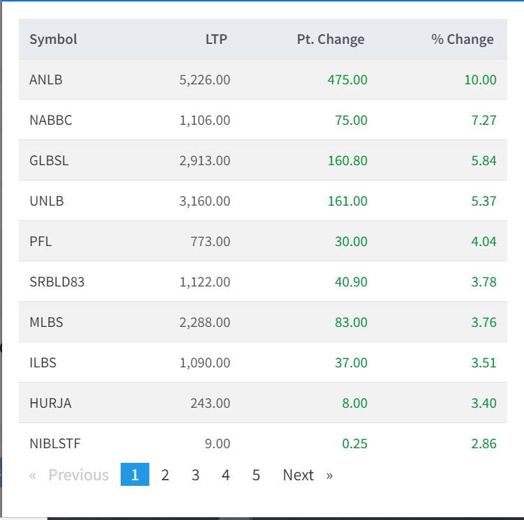 त्यस्तै, नारायणी डेभलपमेन्ट बैंकको ७.२७ प्रतिशत, गुराँस लघुवित्तको ५.८४ प्रतिशत, युनिक नेपाल लघुवित्तको ५.३७ प्रतिशत र पोखरा फाइनान्सको ४ प्रतिशतले शेयरमूल्य बढेको छ ।