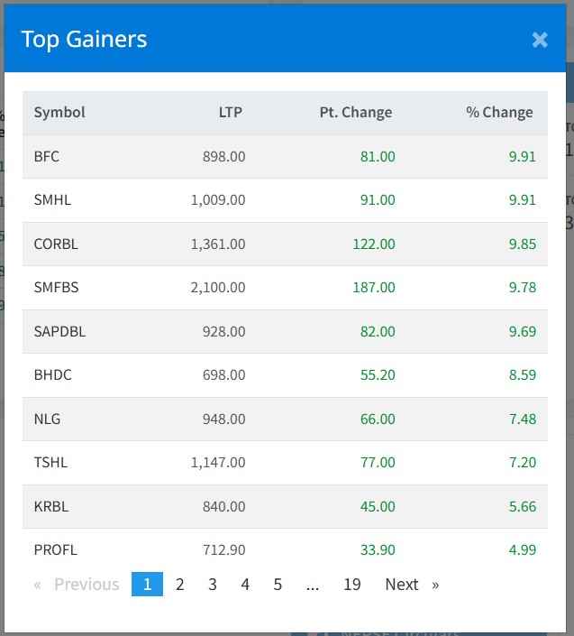 शेयर बजार बढेसँगै आज १६९ वटा कम्पनीको शेयरमूल्य बढेको छ । जसमा बेष्ट फाइनान्स र सुपरमादी हाइड्रोेपावरको शेयरमूल्य सर्वाधिक बृद्धि भएको छ ।
