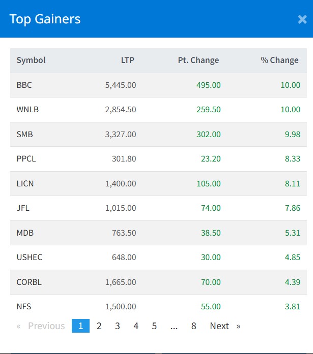 त्यस्तै, आज पाँचथर पावर कम्पनी, एलआइसी नेपाल, जानकी फाइनान्स, मितेरी डेभलपमेन्ट बैक लगायतका कम्पनीका लगानीकर्ताहरुले सर्वाधिक कमाएका छन् ।