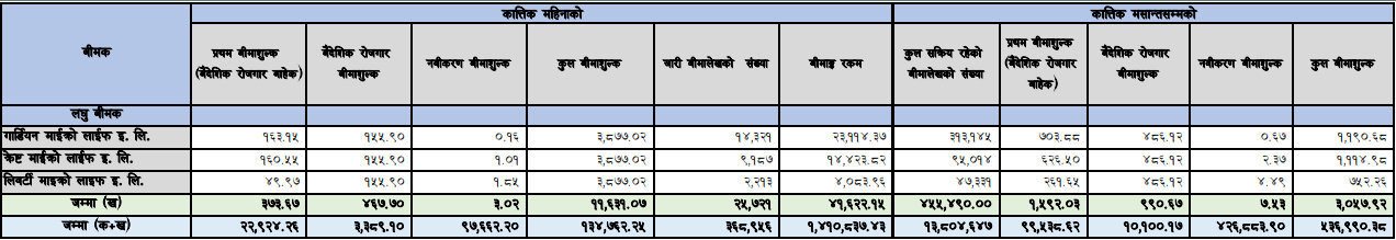 चार महिनामा जीवन लघुबीमाको ब्यवसाय साढे ३० करोडमाथि, कुनको कति ?