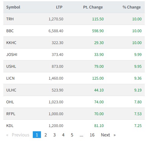 त्यस्तै, अपर स्याङ्गे, एलआईसी नेपाल, अपर लोहरी खोला, ओरियन्टल होटल, रिभर फल्स र कालिन्चोक दर्शनको सर्वाधिक कारोबार भएको छ।
