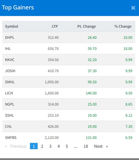 नेपाल स्टक एक्सचेञ्ज (नेप्से) १७.८० अकंले बढेर २७७५.८५ बिन्दुमा कायम भएको छ । आज ३०७ कम्पनीको १ करोड ८१ लाख ६० हजार कित्ता शेयर किनबेच हुँदा ८ अर्ब ५२ करोडको शेयर कारोबार भएको हो ।