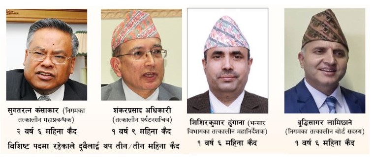 तत्कालीन पर्यटनसचिव एवं निगम सञ्चालक समिति अध्यक्ष शंकरप्रसाद अधिकारी, निगमका महाप्रबन्धक एवं सञ्चालक समिति सदस्य सुगतरत्न कंसाकार, निगम सञ्चालक समिति सदस्यद्वय बुद्धिसागर लामिछाने र शिशिरकुमार ढुंगाना दोषी ठहरिँदा तत्कालीन पर्यटनमन्त्री जीवनबहादुर शाहीले सफाइ पाएका हुन् ।