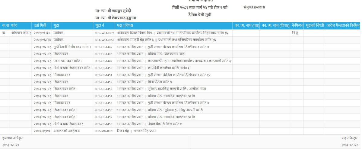 सर्वोच्च अदालतका न्यायाधीश सारंगा सुवेदी र न्यायाधीश टेकप्रसाद ढुंगानाको संयुक्त इजलासमा रहेको सो मुद्दामा १७ मंसिरमा दुवै पक्षले लिखित बहस नोट पेश गरेपछि सर्वोच्चले अन्तिम फैसला दिन लागेको हो ।