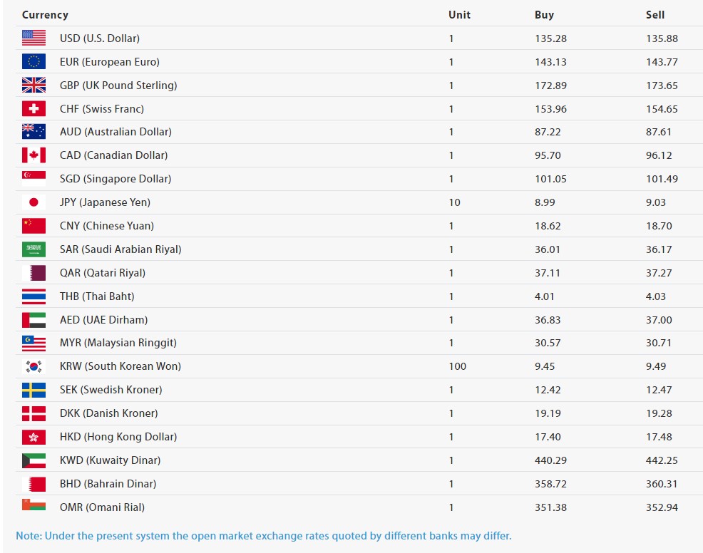 त्यसैगरी एक युरोको खरिदमूल्य १४३.१३ रुपैयाँ र बिक्रीदर १४३.७७ रुपैयाँ, पाउन्ड स्टर्लिङको खरिदमूल्य १७२.८९ रुपैयाँ र बिक्रीदर १७३.६५ रुपैयाँ रहेको छ। एक अष्ट्रेलियन डलरको खरिदभाउ ८७.२२ रुपैयाँ छ भने बिक्रीदर ८७.६१ रुपैयाँ छ।