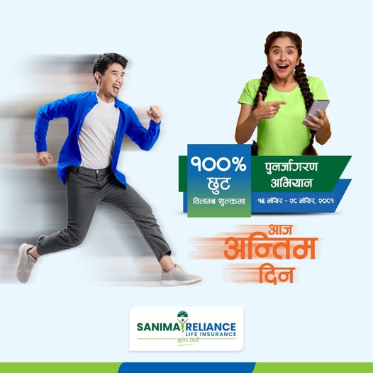 सानिमा रिलायन्स लाइफको व्यतित बीमालेख नविकरणमा छुट पाउने आज अन्तिम दिन