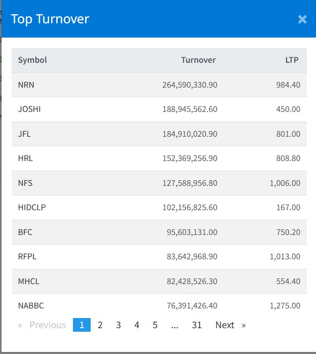 त्यस्तै, जोशी हाइड्रोपावरको १८ करोड ९ लाख रुपैयाँ, जानकी फाइनान्सको १८ करोड ४९ लाख रुपैयाँ, हिमालयन रि इन्स्योेरेन्सको १५ करोड २३ लाख रुपैयाँ र नेपाल फाइनान्सको १२ करोड रुपैयाँको शेयर खरिद–बिक्री भएको छ ।
