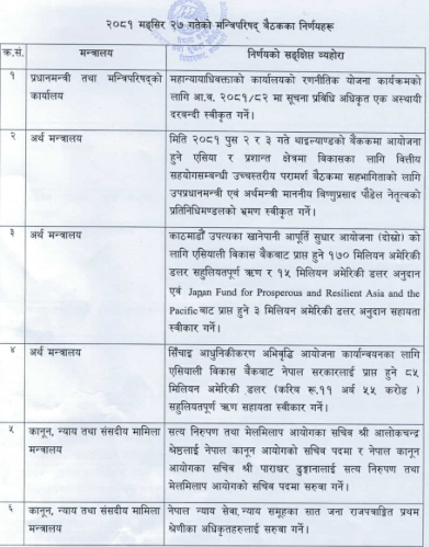 उपत्यकाको खानेपानी सुधारका लागि १७० मिलियन डलर ऋण स्वीकृत, यस्ता छन् मन्त्रीपरिषद्का १४ निर्णय