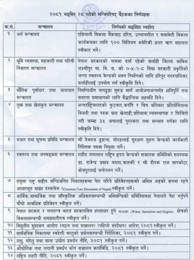 उपत्यकाको खानेपानी सुधारका लागि १७० मिलियन डलर ऋण स्वीकृत, यस्ता छन् मन्त्रीपरिषद्का १४ निर्णय