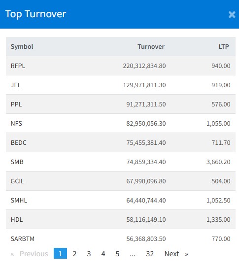 त्यस्तै, नेपाल फाइनान्स, भूगोल इनर्जी, सर्पोट माईक्रोफाइनान्स, घोराही सिमेन्टस, सुपर मादी, हिमालयन डिष्टिलरी र सर्वोत्तम सिमेन्टसको सर्वाधिक कारोबार भएको छ।
