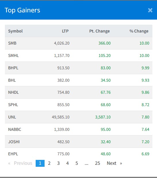 त्यस्तै, आज बलेफी हाइड्रोपावर, नेपाल हाइड्रो डेभलपर लिमिटेड, सयपत्री हाइड्रोपावर लगायतका कम्पनीको शेयरमूल्य सर्वाधिक बृद्धि भएको छ ।