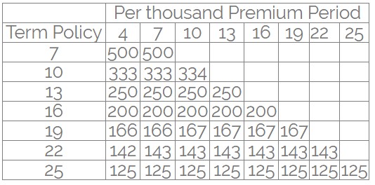 बीमा अवधिको आधारमा निम्न लिखित अवधिमा प्रतिहजार तोकिएको रकम प्रदान गरिन्छ र अवधि समाप्तीमा बीमांक रकमको पुरा अवधिको बोनससहित भुक्तानी गरिन्छ ।