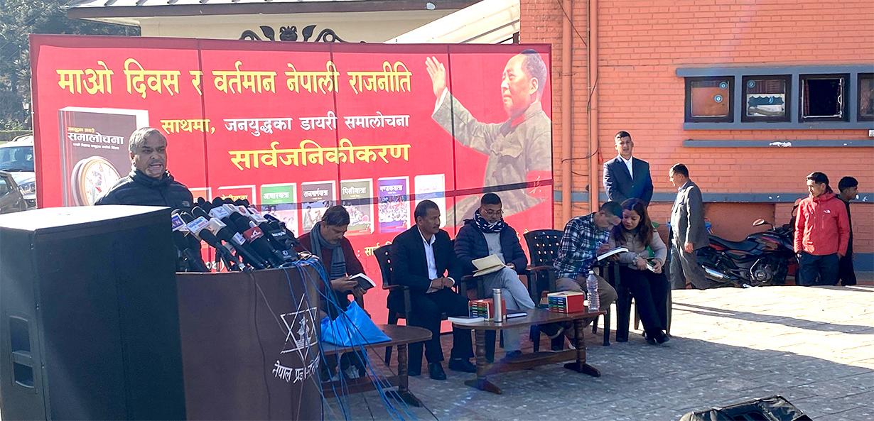जनवादी लेखक तथा साहित्यकार खेम थपलियाद्वारा लिखित ‘जनयुद्धका डायरी समालोचना’ बिषयक पुस्तकको सार्वजनिकीकरण र ‘माओ दिवस र बर्तमान नेफाली राजनीति’ बिषय अन्तरक्रिया कार्यत्रममा पूर्वअर्थमन्त्री तथा नेकपा माओवादी केन्द्रका उप महासचिव शर्माले आर्थिक नीतिको सिद्धान्तलाई माओसँग जोडेर विश्लेषण गरेका थिए । पूर्वमन्त्री शर्माले वर्तमान प्रधानमन्त्री केपी शर्मा ओलीको नाम नलिई भ्रष्टाचारी र बिचौलियासँग मिलेर काम गरिरहेको र जनताले सो बारे प्रश्न गरिरहेको बताए ।