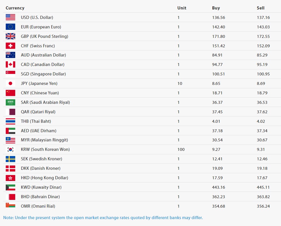 आज पनि एक अमेरिकी डलरको खरिदमूल्य १३६.५६ रुपैयाँ र बिक्रीमूल्य १३७.१६ रुपैयाँ रहेको छ। यस दिन एक युराको खरिदमूल्य १४२.४० रुपैयाँ र बिक्रीमूल्य १४३.०३ रुपैयाँ छ भने अष्ट्रेलियन डलरको खरिदमूल्य ८४.९१ रुपैयाँ र बिक्रीमूल्य ८५.२९ रुपैयाँ रहेको छ।