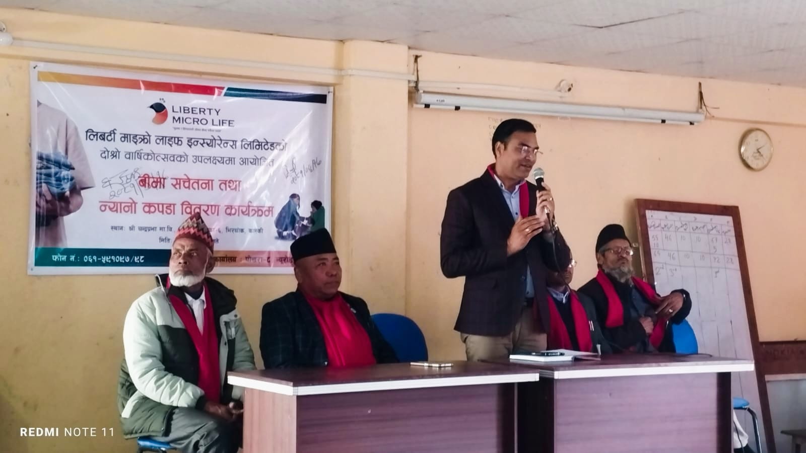काठमाडौँ । नेपालको सिमान्तकृत समुदायलाई लक्षित गर्दै लघु जीवन बीमाका विशेष बीमा योजनाहरु प्रदान गर्ने उद्देश्यले मिति २०७९/०९/१७ मा स्थापना भएको लिबर्टी माइक्रो लाइफ इन्स्योरेन्स लिमिटेडले आफ्नो दोश्रो वार्षिकोत्सव संस्थागत सामाजिक उत्तरदायित्व सम्बन्धित कम्पनीको विभिन्न स्थानहरुमा कार्यक्रम गरी मनाएको छ ।