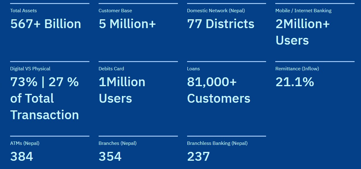 कर्जा प्रवाहमा पनि बैंक अग्रस्थानमा छ । १५ महिनाको अवधिमा बैंकले २७ अर्ब रुपैयाँले कर्जा प्रवाह वृद्धि गर्दै ४ खर्ब १० अर्ब रुपैयाँ पुर्याएको छ । बैंकको लागत आय अनुपात ३६.३० प्रतिशत छ भने कर्मचारीमा १ रुपैयाँ खर्च गर्दा ह्यान्डल हुने बिजनेसको आकार १००७ रुपैयाँ रहेको छ । हालसम्मको तथ्यांकअनुसार बैंकको सञ्चित वितरणयोग्य नाफा १ अर्ब ९१ करोड रहेको छ जुन वाणिज्य बैंकहरुमध्ये पाँचौं धेरै हो ।