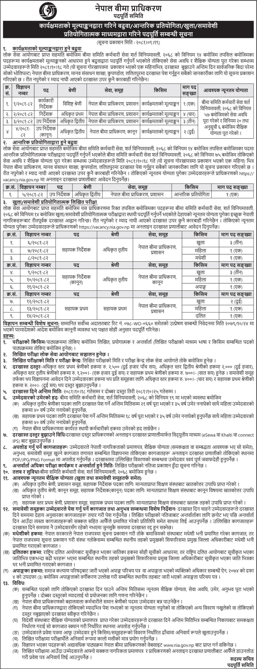 बीमा प्राधिकरणमा ठूलो संख्यामा कर्मचारीका लागि आवेदन खुल्यो (सूचना सहित)