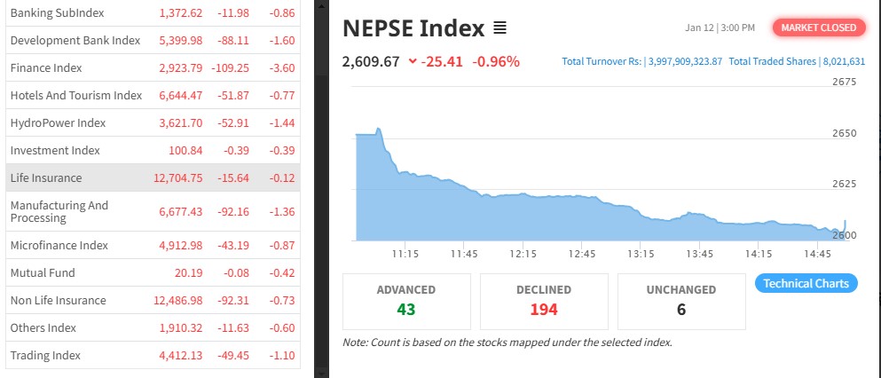२५ अकंले घट्यो बजारः १३ वटै उपसूचक राताम्य हुँदा खुम्चियो कारोबार, किन भयो प्रभावित ?