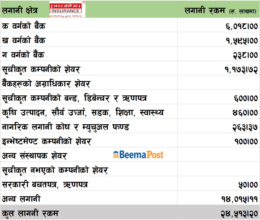 प्रभु इन्स्योरेन्सको लगानी साढे २ अर्ब, कुन क्षेत्रमा कति?