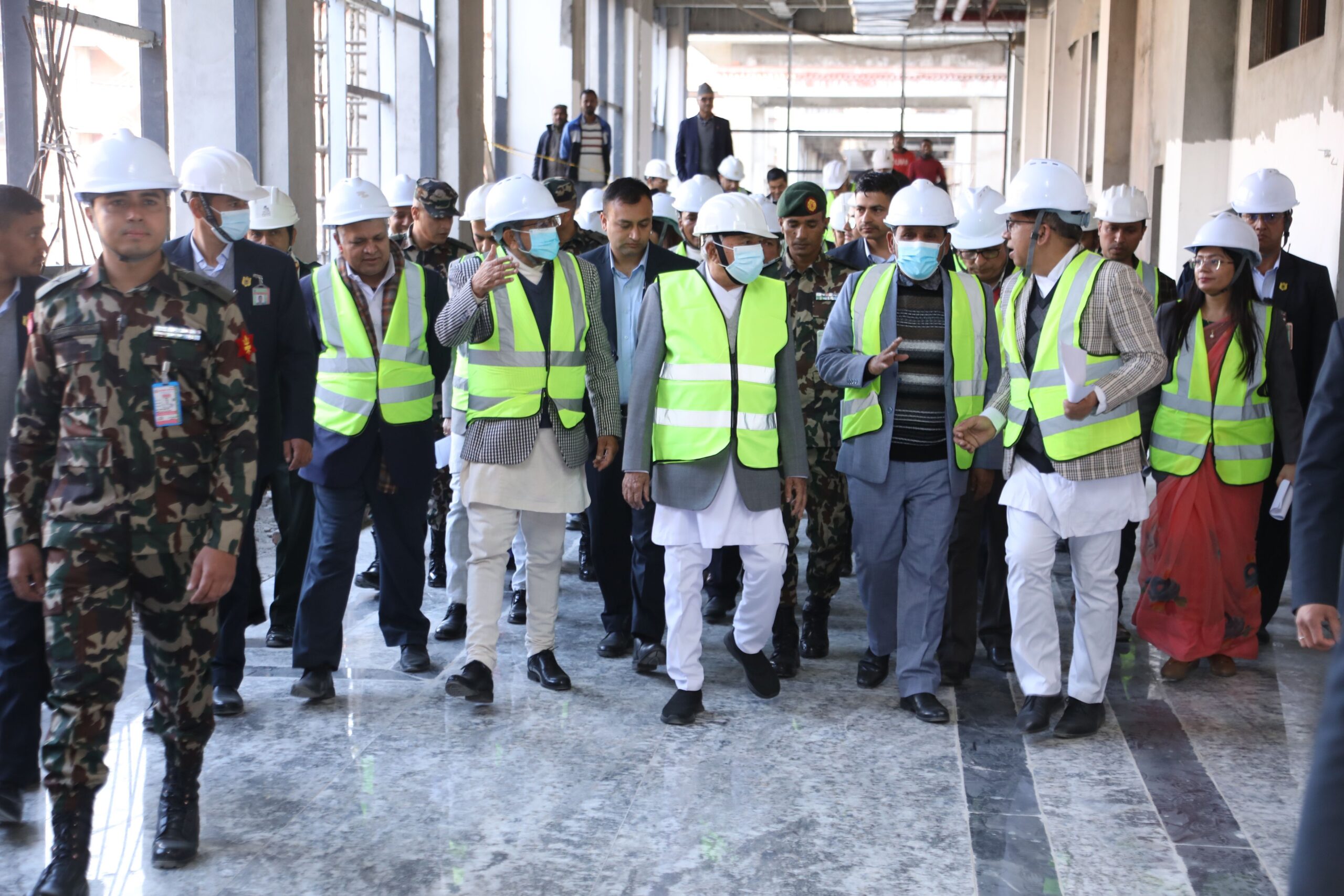 राष्ट्रपति पौडेललाई अवलोकनका क्रममा शहरी विकास मन्त्रालयका सचिव गोपाल सिग्देलले सो भवन निर्माणमा भइरहेको प्रगतिबारे जानकारी गराएका थिए । सो क्रममा पौडेलले भवनसम्बन्धी विभिन्न जिज्ञासा राख्दै सम्बद्ध पक्षलाई यथाशक्य चाँडो सक्न निर्देशन पनि दिए ।