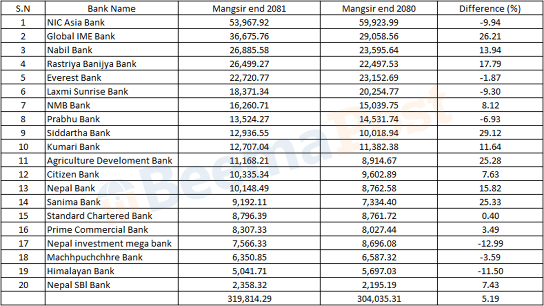 चालु आर्थिक वर्षको पाँच महिनामा व्यक्तिगत घर बनाउनका लागि सर्वाधिक कर्जा दिनेमा एनआइसी एशिया बैंक रहेको छ । बैंकले ५३ अर्ब ९६ करोड ७८ लाख कर्जा प्रदान गरेको छ । जुन गत आर्थिक वर्षको तुलनामा ९.९४ प्रतिशतले कम हो ।