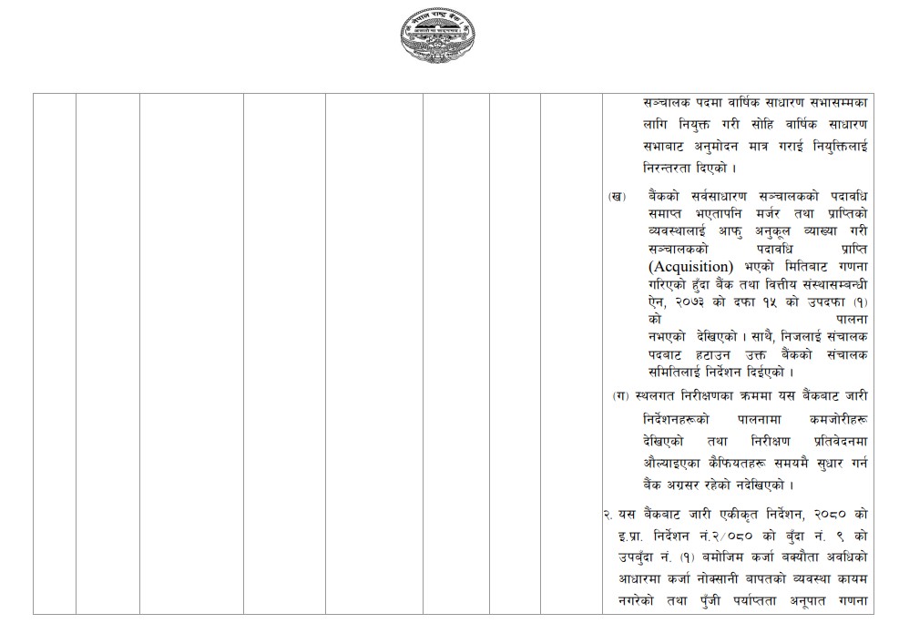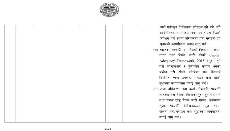राष्ट्र बैंकले आगामी दिनमा यस्ता त्रुटि दोहोरिन नदिन सबै बैंकलाई सुधार योजना लागू गर्न र नियामकीय निर्देशनहरूको पूर्ण पालना गर्न निर्देशन दिएको छ।