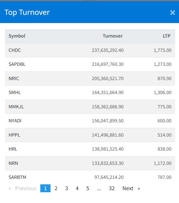 त्यस्तै, आज सप्तकोशी डेभलपमेन्टको २१ करोड ६६ लाख रुपैयाँ, नेपाल रिइन्स्योरेन्स कम्पनीको २० करोड ५३ लाख रुपैयाँ, सुपरमादी हाइड्रोपावरको १६ करोड ४३ लाख रुपैयाँ बराबरको कारोबार भएको छ ।