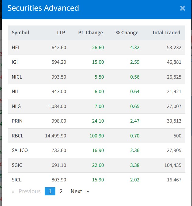 त्यस्तै, आज हिमालयन रि इन्योरेन्स र नेपाल रि इन्स्योरेन्ससहित दुबैको शेयरमूल्यमा पनि हरियाली छाएको छ ।