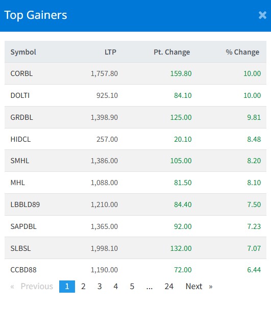 साथै, ग्रिन डेभलपमेन्ट बैंकको शेयरमा ९.८१ प्रतिशत, सुपरमादी हाइड्रोपावरको ८.२० प्रतिशत, मन्दाकीनि हाइड्रोपावरको ८.१० प्रतिशत लगायतले अन्य कम्पनीहरुको शेयरमूल्य बृद्धि भएको छ ।
