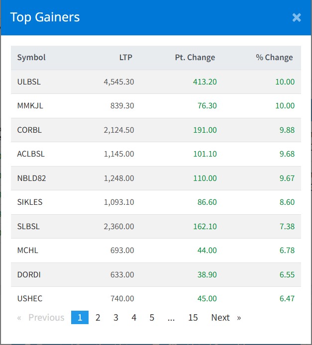 त्यस्तै, यसदिन कर्पोरेट डेभलपमेन्ट बैंकको शेयर ९.८८ प्रतिशत, आरम्भ चौतारी लघुवित्तको ९.६८ प्रतिशत र यी बाहेकका ११६ वटा कम्पनीको शेयरमूल्य बृद्धि भएको छ ।