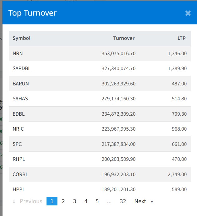 त्यस्तै, सप्तकोशी डेभलपमेन्ट बैंकको कारोबार ३२ करोड ७३ लाख रुपैयाँ, बरुण हाइड्रोपावरको ३० करोड २२ लाख रुपैयाँ, साहश उर्जाको २७ करोड ९१ लाख रुपैयाँ र एक्सेल डेभलपमेन्ट बैंकको २३ करोड रुपैयाँले सर्वाधिक कारोबार भएको छ ।