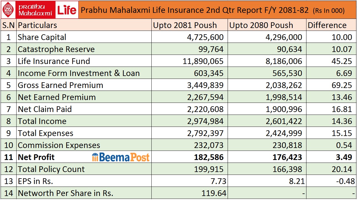प्रभु महालक्ष्मी लाइफको वित्तीय विवरणमा प्रगतिः नाफा बढ्यो, जीवन बीमाकोष १२ अर्ब नजिक