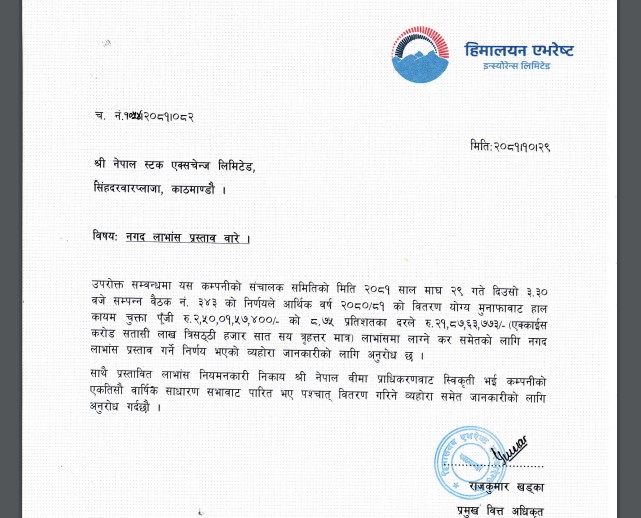 हिमालयन एभरेष्टद्वारा लाभांश घोषणा