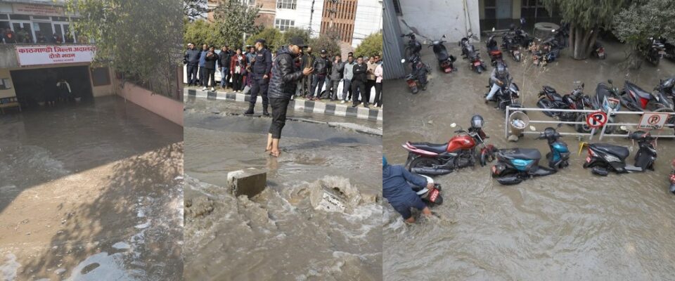 काठमाडौँ । काठमाडौँको बबरमहल क्षेत्र आज मेलम्ची खानेपानीको मुख्य पाइप फुटेपछि जलमग्न भएको छ । काठमाडौँ जिल्ला अदालत नजिकै रहेको मुख्य पाइप फुट्दा बन परिसर, विशेष अदालत र काठमाडौँ जिल्ला अदालतलगायतका सरकारी कार्यालय डुबानमा परेका छन् । सो पाइप फुटेपछि काठमाडौँको खानेपानी वितरण अवरुद्ध भएको छ भने स्थानीय बासिन्दा र कार्यालयहरू प्रभावित भएका छन् । मेलम्ची खानेपानीको मुख्य पाइप फुट्नुले सरकारी पूर्वाधारको गुणस्तर र काम गर्ने तरिकामा गम्भीर प्रश्न खडा गरेको छ । अव्यवस्थित रूपमा गरिएका कामका कारण यस्तो अवस्था आएको भन्दै स्थानीयवासीले आक्रोश व्यक्त गरेका छन् । हालै काठमाडौँमा बिजुलीका तारहरू अन्डरग्राउन्ड गर्नेदेखि लिएर पानीका पाइपहरू भूमिगत राख्ने काम भइरहेको छ, तर उचित योजना र निगरानीको अभावमा यस्ता परियोजनाहरू दिगो बन्न नसकेको देखिएको छ । बबरमहल क्षेत्रमा जलमग्न अवस्थालाई नियन्त्रणमा लिन सुरक्षाकर्मीको बाक्लो उपस्थिति देखिएको छ । यद्यपि, सरकारी निकायले दिगो समाधानतर्फ ध्यान नदिँदा भोलि अझ गम्भीर क्षति हुनसक्ने चिन्ता बढेको छ । स्थानीयहरूका अनुसार पाइप फुटेर आएको क्षतिले मेलम्ची खानेपानी आयोजनाको गुणस्तरमाथि पनि प्रश्न उठाएको छ । खानेपानी वितरण प्रणालीमा दीर्घकालीन योजना र उच्च गुणस्तरको सामग्रीको प्रयोग नगरीकन यस्ता समस्या दोहोरिरहनेछन् । वर्तमानमा गरिएको काम अव्यवस्थित र कम गुणस्तरीय हुँदा दिगो समाधानको सट्टा थप समस्याहरू निम्त्याइरहेको छ । स्थानीय बासिन्दा र विज्ञहरूले सरकारले दीर्घकालीन सोच राखेर पूर्वाधार निर्माण … Continue reading मेलम्ची पाइप फुट्दा बबरमहल जलमग्न, पूर्वाधारको गुणस्तरमाथि गम्भीर प्रश्न