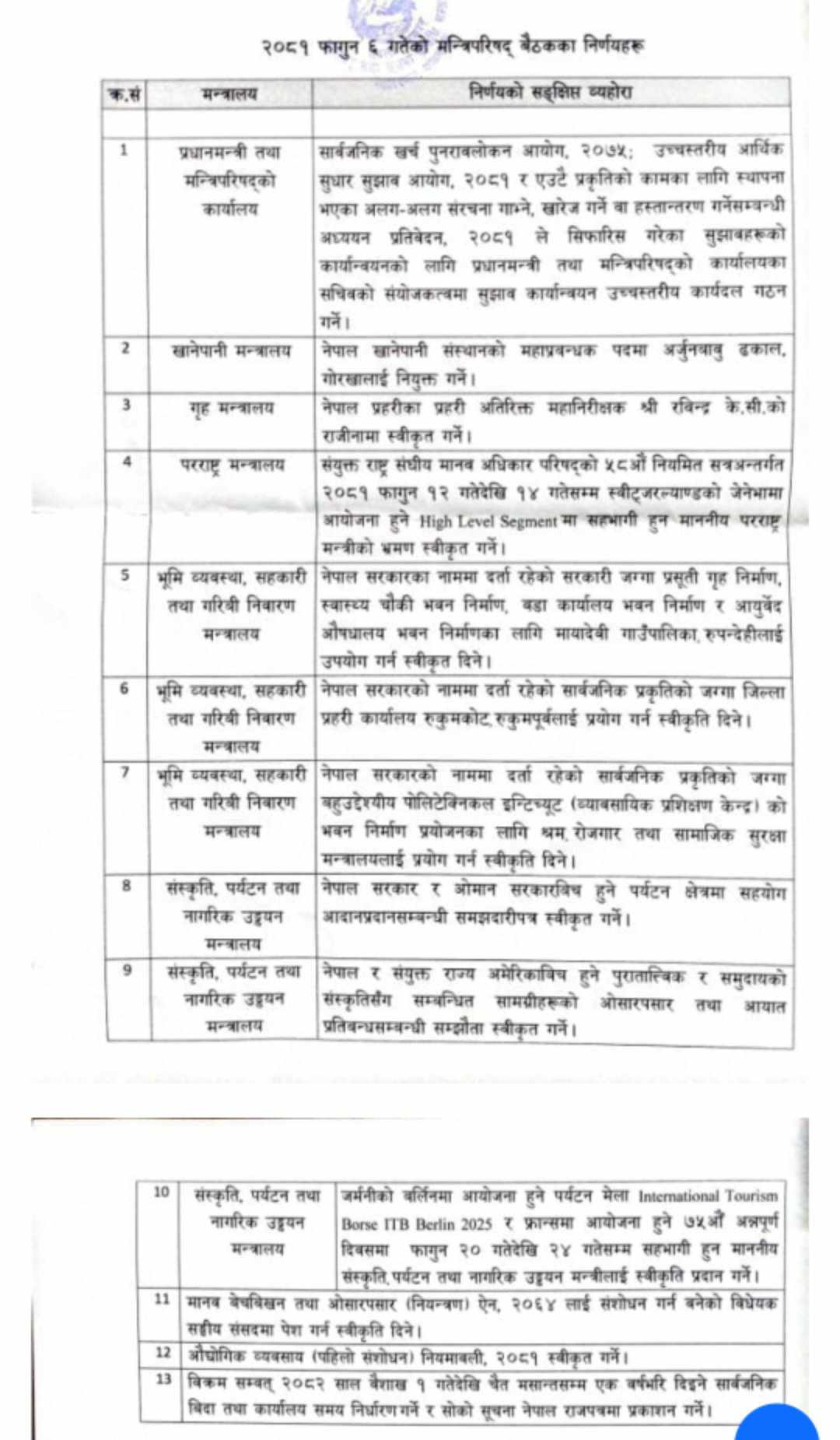 यस्ता छन् मन्त्रिपरिषद्को निर्णयहरु