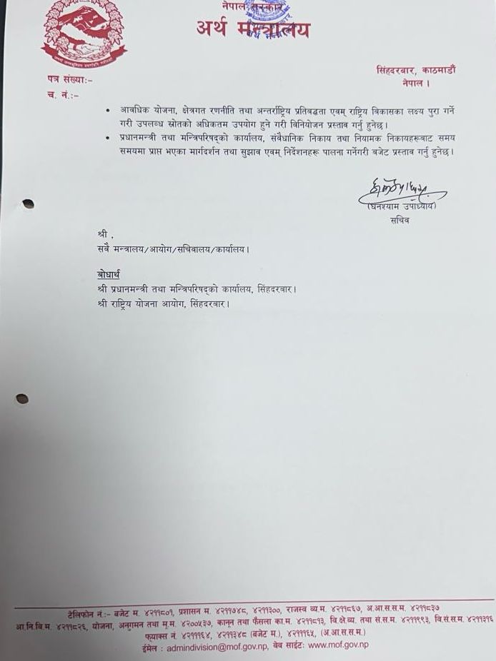 अर्थमन्त्रालयद्वारा बजेट निर्माण सम्बन्धि मार्गदर्शन जारी