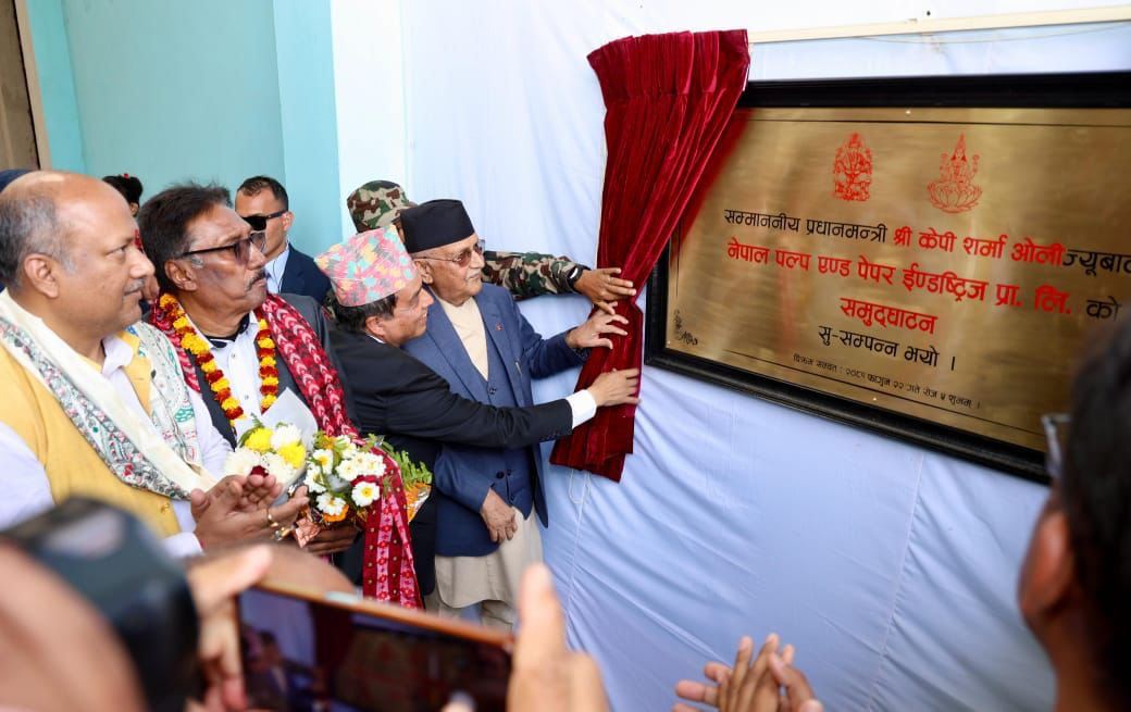 काठमाडौं । आइएमई ग्रुपको लगानीमा महोत्तरी जिल्लाको गौशाला नगरपालिका वडा नं. १, रामनगरमा स्थापना भएको नेपाल पल्प एण्ड पेपर इन्डष्ट्रिज प्रधानमन्त्री केपी शर्मा ओलीले उद्घाटन गरेसँगै सञ्चालनमा आएको छ। प्रधानमन्त्री केपी शर्मा ओलीले बिहीबार उद्योग परिसरमा रहेको ताम्रपत्र अनावरण गर्दै उद्योगको औपचारिक उद्घाटन गरेका हुन्। उद्घाटन लगत्तै प्रधानमन्त्री ओलीले कागज उत्पादन प्रकृया र उद्योगमै रहेको वातावरण मैत्री क्यालसियम कार्वोनेट उत्पादनको समेत अवलोकन गरेका थिए।