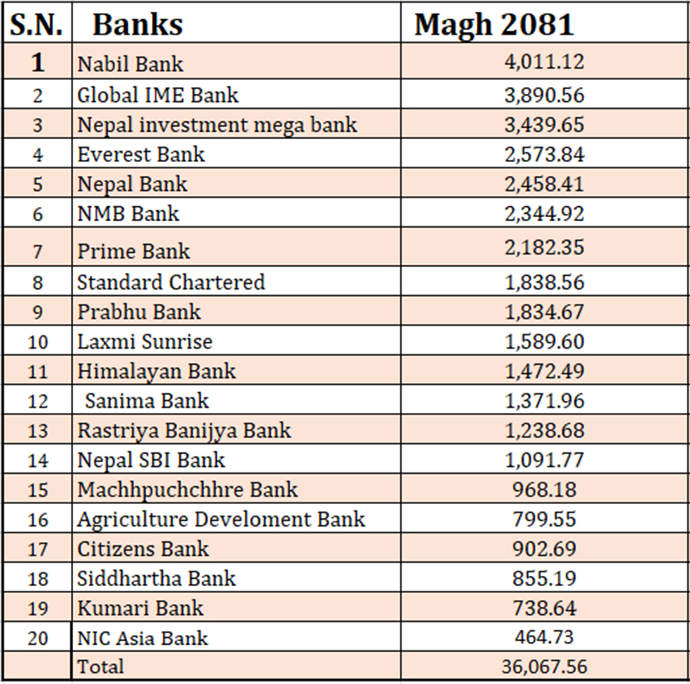 ७ महिनामा वाणिज्य बैंकले कमाए ३६ अर्ब, कुनको नाफा कति ?