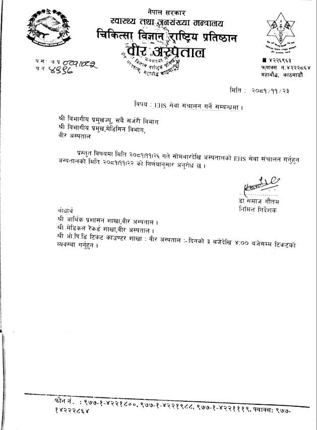 वीर अस्पतालमा दुवै सिफ्टमा अपरेशन सेवा शुरु